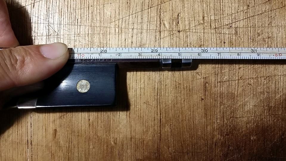 買把捲尺或布尺,量測小、中提琴弓長度約73cm(弓桿長度不包括調節螺絲),大提琴弓約70cm(最大正負範圍5mm)如果不是請挑選其他把。