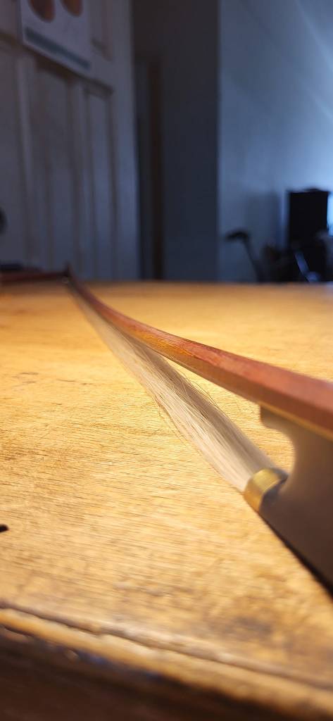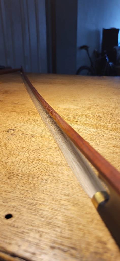 鉋削弓桿上半部內凹圓型面,和[貼弦]有密切關係。跳弓和弓反應力快慢精細絕大部分都是內凹決定,弓桿弧度不易變形也是一個目標,內凹弧面攸關與製作的精準和確實。